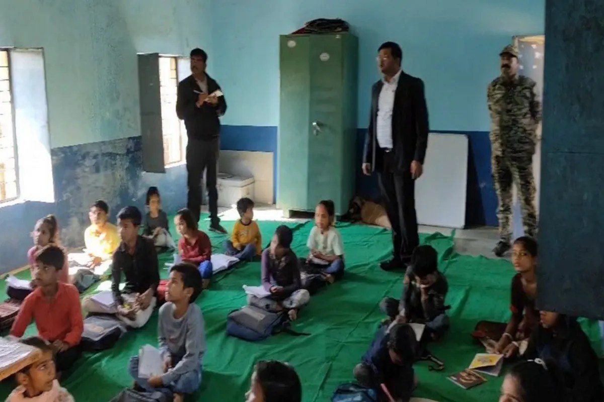 स्कूल का निरीक्षण करते कलेक्टर।