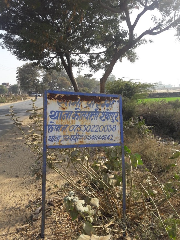 देहात और कोतवाली थाने की सीमा पर लगा बोर्ड, जिसमें आज भी लिखे हैं पुराने पुलिस अधिकारियों के नाम और मोबाइल नंबर।