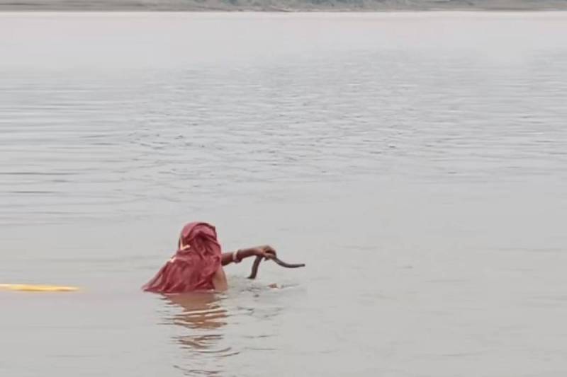 श्योपुर के सामरसा गांव के पास चंबल नदी में तेजा दशमी के अवसर पर एक अनोखी परंपरा निभाई जाती है, जहां काली माता मंदिर का भगत (जिसे स्थानीय भाषा में भोपा कहते हैं) नदी में डुबकी लगाता है और एक काले नाग को पकड़ लेता है। वो नाग को गले में लपेटकर वाप आता है और फिर उसे मंदिर ले जाया जाता है जहां वो सर्पदंश व अन्य जहरीले कीड़ों के शिकार लोगों के बंध काटता है। इस बार भी भोपा ने चंबल नदी में डुबकी लगाई और काले नाग को पकड़कर लाया जिसे देखने के लिए भारी संख्या में लोग मौजूद रहे। यह परंपरा 50 वर्षों से चली आ रही है और भोपा के शरीर में देवी शक्ति का प्रतीक माना जाता है।