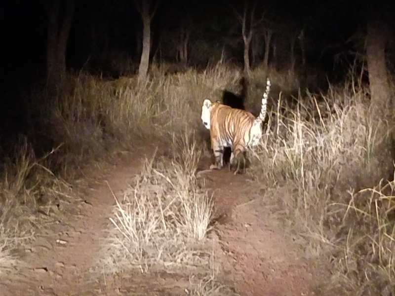 कूनो नेशनल पार्क में लगे कैमरों में बाघ टी-38 की तस्वीरें तो कई बार कैद हुई है, लेकिन गत 1 मार्च की रात्रि को कूनो डीएफओ ब्रिजेंद्र श्रीवास्तव ने स्वयं अपने मोबाइल कैमरे में बाघ की तस्वीर कैद की। हुआ यंू की डीएफओ श्रीवास्तव अपने साथी अफसरों के साथ पालपुर रेस्ट हाउस से लौट रहे थे, तभी रात्रि में उन्हें बाघ दिखाई दिया। यही वजह रही कि उन्होंने गाड़ी रुकवाई और बाघ की फोटो क्लिक की।