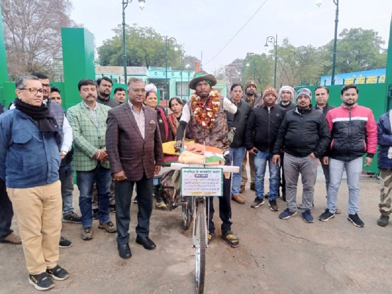 बाघ और चीता संरक्षण के लिए प्रदेश की साइकिल यात्रा कर रहा आदिवासी युवक