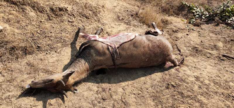 गोली मारकर नील गाय का शिकार