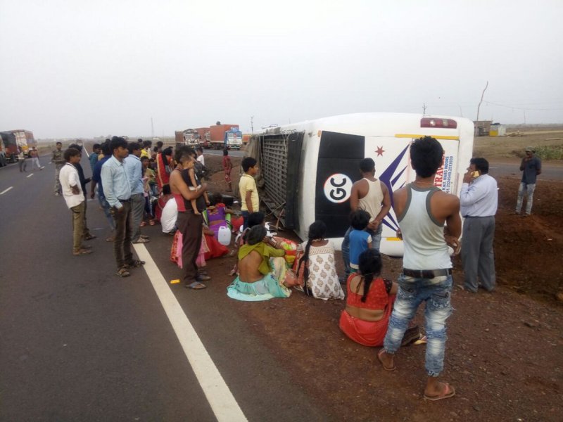 जानकारी के मुताबिक उत्तर प्रदेश के अटलपुर से श्रमिको को लेकर एक यात्री बस सूरज गुजरात छोडऩे जा रही थी। बस बदरवास के पास ही पहुंची थी कि चालक की लापरवाही के चलते अचानक से बस पलटगई।घटना में बस में सवार मजदूरो में से करीब दर्जन भर यात्री मामूली रूप से घायल हो गए। मामले की सूचना पर से मौके पर पहुंची पुलिस ने सभी घायलों को बदरवास अस्पताल पहुंचाया, जहां से प्राथमिक उपचार के बाद छुट्टी दे दी गई। घायलों में लेखराम यादव, निबास उतरला, सुभाष यादव, हीरालाल यादव, संतोष कुशवाह निवासी पचोर, कंडक्टर पुरूषोत्तम जाट आदि शामिल हैं। घायलों को बदरवास पुलिस के उनि रामेश्वर शर्मा ने चाय-नाश्ते की व्यवस्था की। बाद में वाहन मालिक ने दूसरी बस की व्यवस्था कर मजदूरों को उनके गंतव्य की ओर रवाना किया। पुलिस ने वाहन चालक के खिलाफ प्रकरण दर्ज कर लिया है।