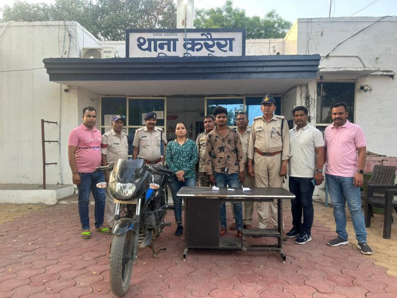 जानकारी के मुताबिक करैरा थाना प्रभारी सुरेश शर्मा को शनिवार को सूचना मिली कि एक युवक बाइक से स्मैक लेकर जा रहा है। सूचना पर से मौके पर पहुंची पुलिस टीम ने आरोपी बदमाश बल्देव उर्फ विक्की पुत्र रमेश कुशवाह निवासी टीला रोड करैरा को पकड़ लिया। बल्देव के पास से पुलिस ने ५० ग्राम स्मैक बरामद कर उसके खिलाफ एनडीपीएस एक्ट के तहत प्रकरण दर्ज कर लिया है। आरोपी के पास से एक बाइक भी जप्त की गई है।