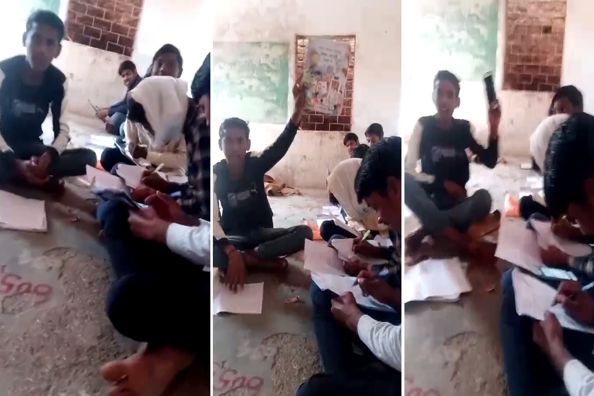 एक तरफ जहां प्रदेशभर में बोर्ड परीक्षाएं चल रही हैं तो वहीं इसी के साथ 9वीं और 11वीं कक्षा की परीक्षाएं भी चल रही हैं। ऐसे में शिक्षा विभाग द्वारा किए जा रहे परीक्षा में तमाम मुस्तैदियों के दावों के बीच नकल के मामले रोजाना कहीं न कहीं से सामने आ रहे हैं। नकल का ऐसा ही एक मामला शिवपुरी जिले के बदरवास विकास खंड के अंतर्गत आने वाले बिजरोनी हायर सेकेंडरी स्कूल से सामने आया है, जहां एग्जाम हॉल में संस्कृत का पेपर दे रहे 11वीं के छात्र इतने बेखौफ होकर चीटिंग करते दिखे, जिसे देख आपको यकीन नहीं होगा। दरअसल, ये इतने बेखौफ इसलिए भी हैं क्योंकि ये ढील इन्हें किसी और से नहीं बल्कि खुद स्कूल के जिम्मेदारों से मिली है।