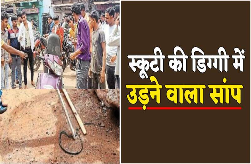स्कूटी की डिग्गी में घुसा उड़ने वाला सांप