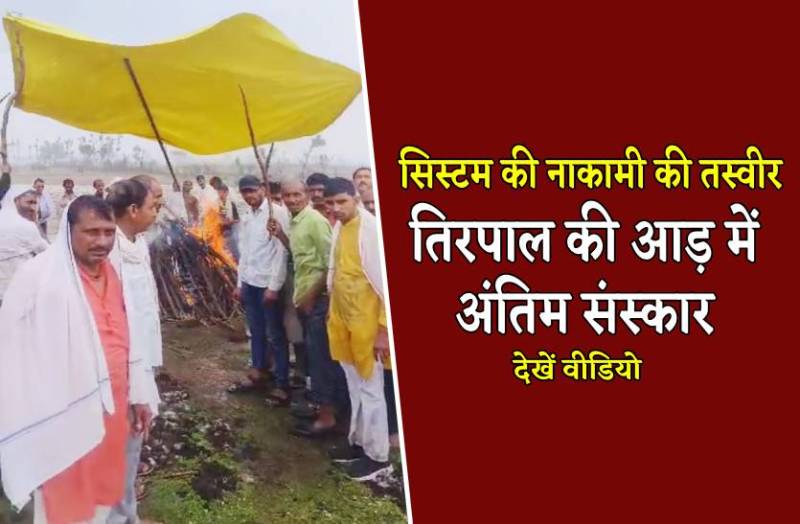 करैरा जनपद के वार्ड-7 से जनपद सदस्य रामहेत गुर्जर की मां सावित्री देवी का शुक्रवार की सुबह 10 बजे निधन हो गया। सुबह से ही करैरा क्षेत्र में रुक-रुक कर बारिश हो रही थी। गांव के मुक्तिधाम की टीनशेड आदि गायब थी ऐसे में शोकाकुल परिवार के साथ ग्रामीणों को यही चिंता थी कि बारिश में अंतिम संस्कार कैसे होगा। फिर ग्रामवासियों ने सलाह करके लकड़ी व बांस इकट्ठे किए तथा पॉलीथिन तिरपाल को बांस में बांधकर उसकी आड़ की, ताकि बारिश का पानी चिता पर न आए। चूंकि अंतिम संस्कार के समय भी बारिश का दौर जारी था, इसलिए तिरपाल के नीचे न केवल चिता जल रही थी, बल्कि परिवार के लोग भी खुद को बारिश से बचाने के लिए उसी तिरपाल के नीचे खड़े रहे। बता दें कि ये इस तरह की कोई पहली तस्वीर नहीं है जब अंतिम संस्कार के लिए इस तरह से जद्दोजहद करनी पड़ी हो इससे पहले भी इस तरह की तस्वीरें कई जगह से सामने आ चुकी हैं।