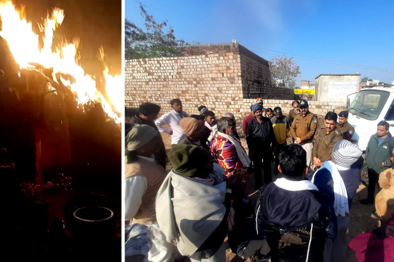 जानकारी के मुताबिक, लक्ष्मीपुरा गांव में रहने वाले वासुदेव और उनकी पत्नी रुकमणि किसी परिचित के घर गमी में शामिल होने धौलपुर गए थे। वासुदेव अपनी तीन बेटियों, जिनमें अनुष्का, संध्या और ज्योति को अपने पिता हजारी बंजारा के पास छोड़ गए थे। 65 वर्षीय बुजुर्ग हजारी बंजारा अपनी दो पोती संध्या (5) ज्योति (4) और अनुष्का (7) के साथ झोपड़ी में सो रहे थे। इसी दौरान रात करीब 11 बजे झोपड़ों में अज्ञात कारणों से आग लग गई।