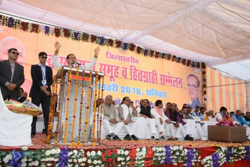 शाम लगभग 4 बजे मंच पर पहुंचे मुख्यमंत्री शिवराज सिंह चौहान ने माइक पर आते ही जल संसाधन मंत्री नरोत्तम मिश्रा से कहा कि आप स्टॉप डैम बनवाते जाओ, पैसे की चिंता मत करना। इस बीच आजीविका मिशन की महिलाओं ने अपने हाथ से बनाई गई सामग्री जब सीएम को भेंट की, तो उन्होंने महिलाओं द्वारा बनाई गई अगरबत्ती, मूंगफली-गुड़ की पट्टी, साबुन, जैकेट हाथ में लेकर बताया कि इस सामग्री की ब्रांडिंग की जानी चाहिए। सीएम ने कहा कि सेल्फ हेल्प ग्रुप (स्व सहायता समूह) में बनने वाले सामान को बेचने के लिए प्रदेश के बड़े शहरों में स्थित मॉल में एक दुकान पर रखवाई जाएंगीं। सीएम ने कहा कि मेरा किसी से कोई मुकाबला नहीं है, मेरी लड़ाई तो गरीबी, बेरोजगारी से है। मैं प्रदेश में यूं ही घूमता रहता हूं, क्योंकि मेरे पैर में चक्कर है। जब तक मैं अपनी जनता से मिल नहीं लेता, मुझे चैन नहीं मिलता।
