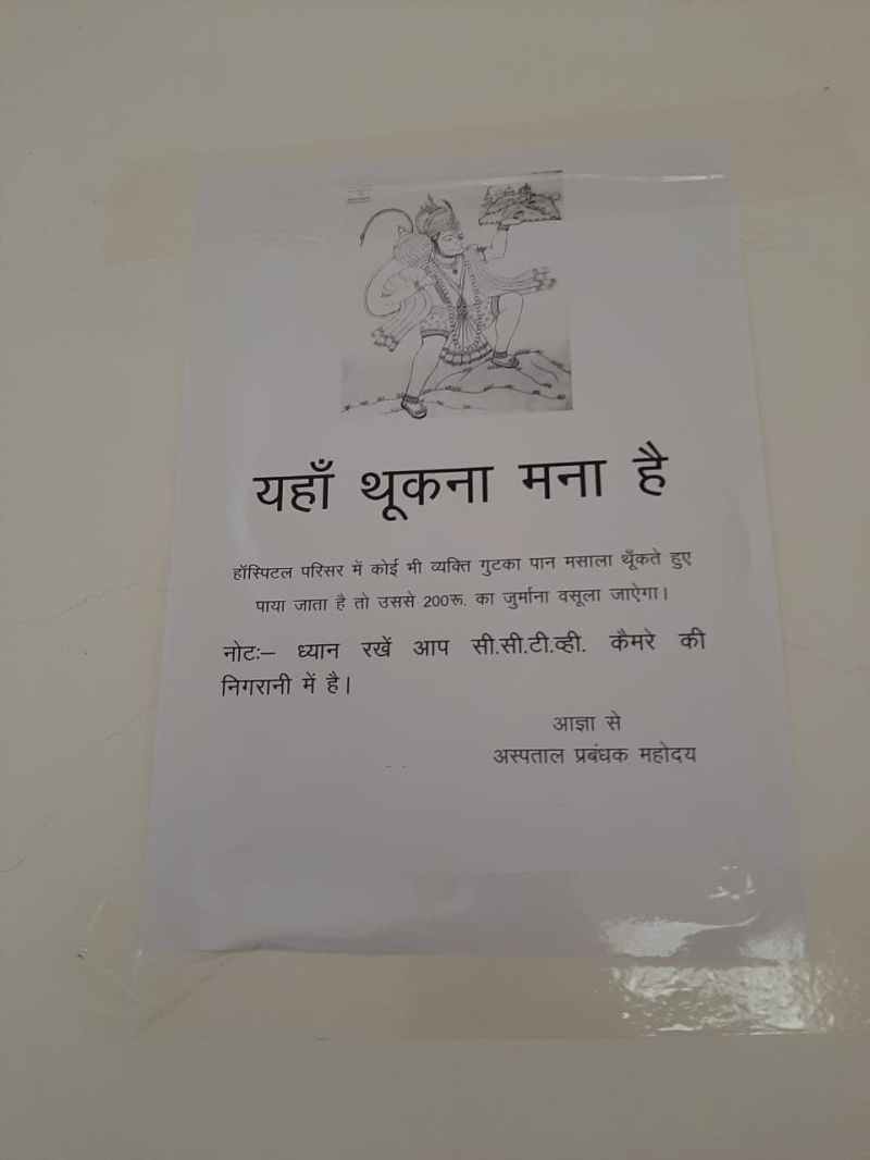 पोस्टर पर लिखा यहां थूकना मना है, थूकने पर २०० रुपए जुर्माना