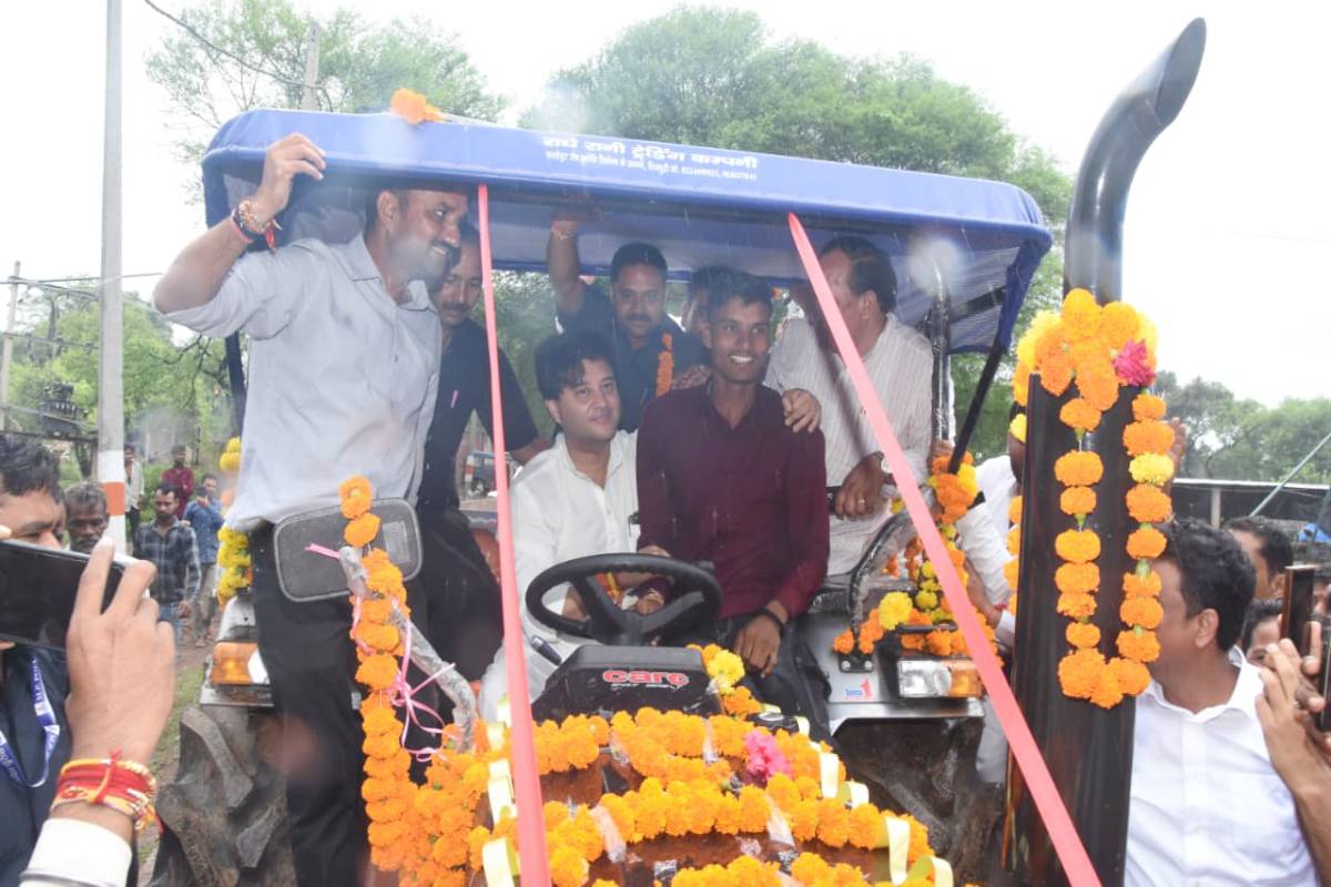 Jyotiraditya Scindia Drive Tractor to Giriraj Home Complete his Promise (source-patrika)
