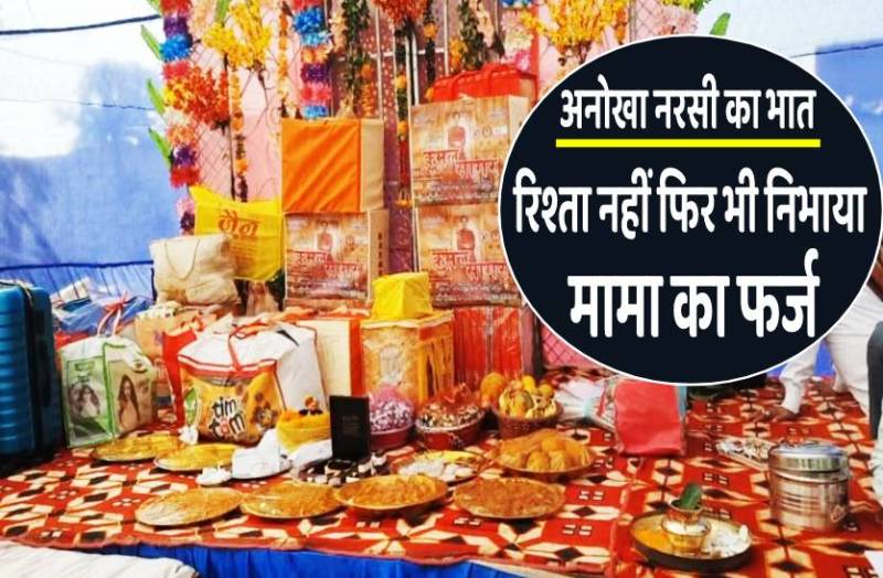 शिवपुरी/बदरवास. शिवपुरी जिले की बदरवास जनपद के अंतर्गत आने वाले ग्राम एजवारा में आयोजित एक शादी समारोह चर्चाओं का विषय बन गई। दुल्हन के मामा न होने पर इस शादी में नोएडा के व्यापारी ने मामा का फर्ज निभाया और लाखों रुपए का अनोखा नरसी भात कर मिसाल पेश की। जिस व्यापारी ने दुल्हन के मामा का फर्ज निभाया उनका दुल्हन से कोई रिश्ता नहीं है और न ही कोई पुरानी जान पहचान लेकिन इसके बावजूद व्यापारी ने सगे मामा से भी बढ़कर अपनी इस भांजी की शादी में खर्च किया।