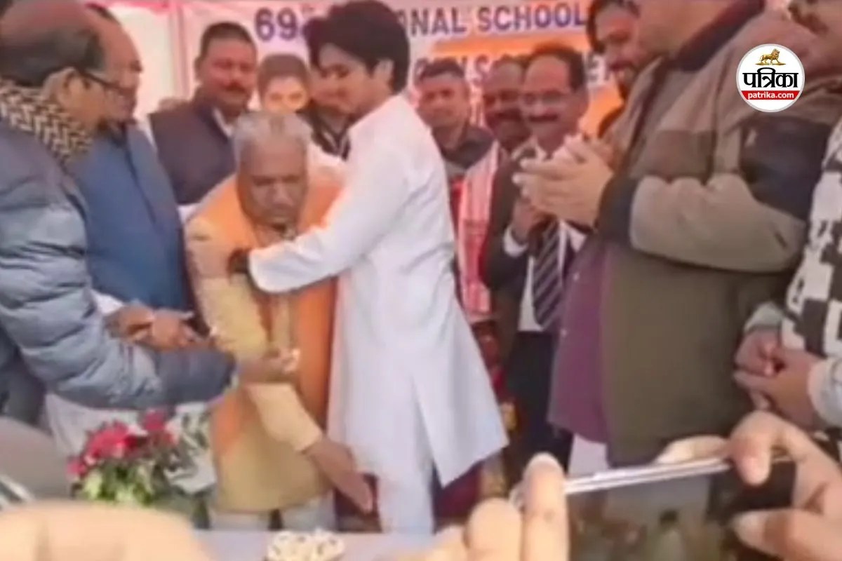 दरअसल, शिवपुरी स्टेडियम में आयोजित एक कार्यक्रम के दौरान देवेंद्र जैन महाआर्यमन सिंधिया समेत कई लोगों मंच पर मौजूद थे। जैसे ही मंच पर विधायक जी ने केक काटा। मौके पर मौजूद महाआर्यमन खड़े होकर ताली बजाने लगे। इसके बाद उन्होंने उम्र में छोटे महाआर्यमन सिंधिया के पैर छू लिए।