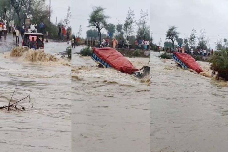 तेज बहाव में बही ट्रेक्टर-ट्रॉली। (फोटो सोर्स- पत्रिका)