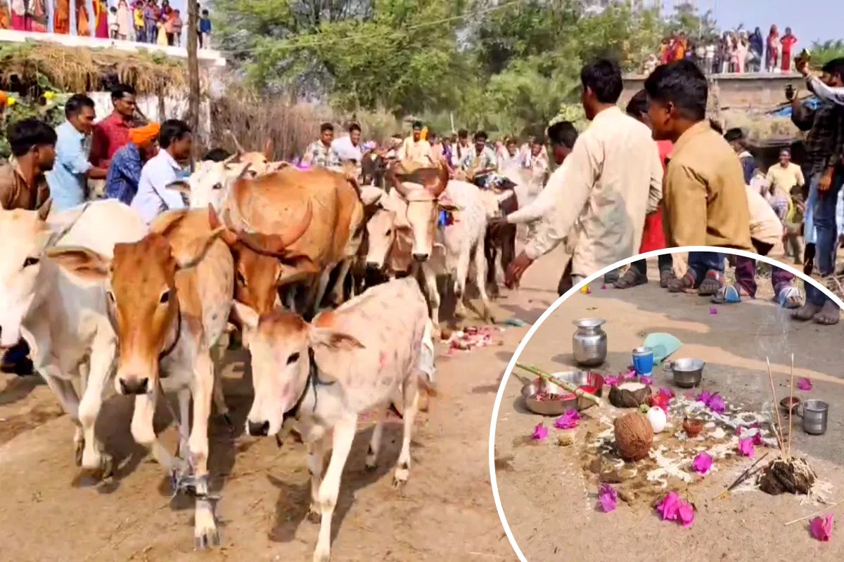 दरअसल, शिवपुरी जिले के बदरवास विकास खंड के अंतर्गत आने वाले ग्राम खैराई में बीते सवा सौ साल से ये परम्परा मनाई जाती आ रही है। इस अनोखी और रोमांचित कर देने वाली परम्परा को स्थानीय ग्रामीणों ने इस बार भी बड़े हर्षोल्लास के साथ धूमधाम से मनाया। मंगलवार को सबसे पहले ग्रामीणों ने गाय की पूजा अर्चना कर पर्व मनाया। इसके बाद गांव के वो लोग एक मार्ग पर इकट्ठे हुए। इनमें वो लोग एक स्थान पर आ गए, जिनकी सालभर में मांगी गई कोई मन्नत पूरी हुई है। ये लोग संबंधित मार्ग पर में लेट गए। इसके बाद उस सड़क से दर्जनों की संख्या में गायें दौड़ते हुए गुजरी और मार्ग पर लेटे लोगों के ऊपर से गुजर गईं। खास बात ये है कि, ये पूरा घटनाक्रम इतना हैरतंगेज होता है कि, कुछ देर के लिए मन्नत मांगने वालों से लेकर उन्हें देखने वालों तक की सांसें थम जाती हैं।