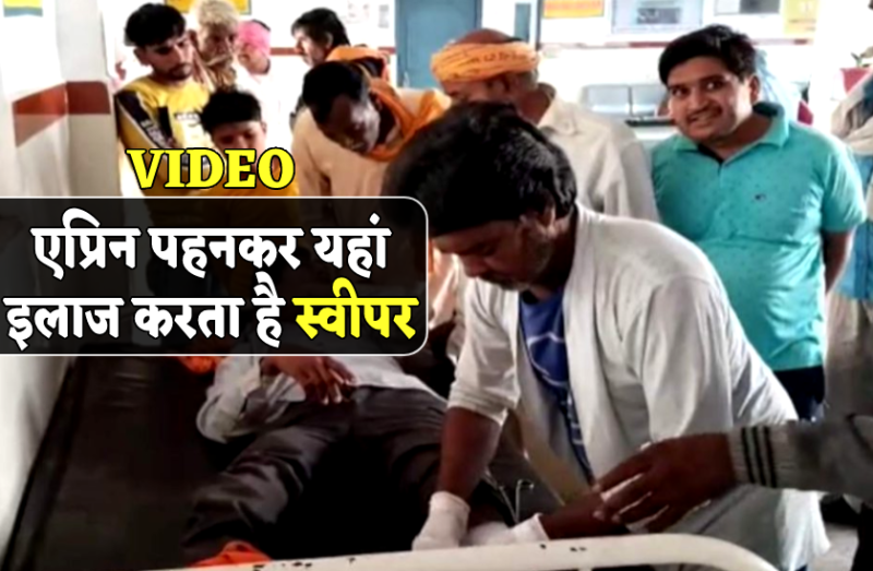 स्वास्थ केंद्र में एप्रिन पहनकर स्वीपर कर रहा इलाज, बोला- डॉ. नकल करके पास हुए, उन्हें कुछ नहीं आता,VIDEO