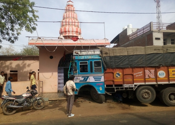 शिवपुरी. कोलारस अनुविभाग क्षेत्र के लुकवासा कस्बे में रविवार की सुबह 9 बजे एक अनियंत्रित ट्रक मंदिर में जा घुसा। घटना का सुखद पहलु रहा कि इस दुर्घटना में कोई जनहानि नहीं हुई।प्रत्यक्षदर्शियों के मुताबिक अनियंत्रित ट्रक जैसे ही मंदिर की ओर घुसा तो मंदिर के आगे बना चबूतरा ट्रक के डीजल टैंक से टकरा गया,जिससे वह क्षतिग्रस्त हो गया। घटना के बाद आसपास के लोग क्षतिग्रस्त डीजल टैंक से रिस रहे डीजल को बाल्टियों में भर कर ले गए।
