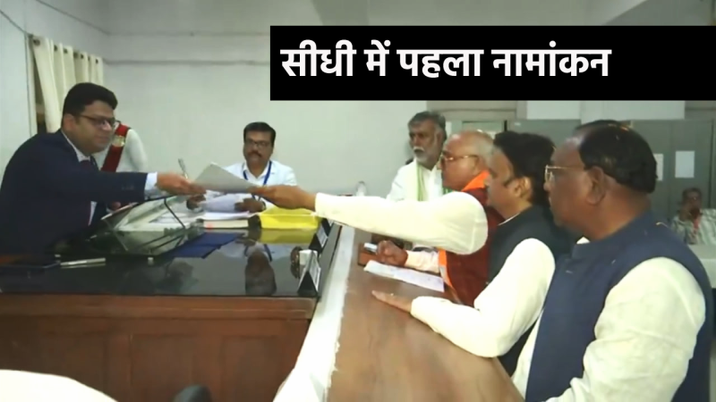 सीधी कलेक्टर के समक्ष नामांकन दाखिल करते भाजपा प्रत्याशी।