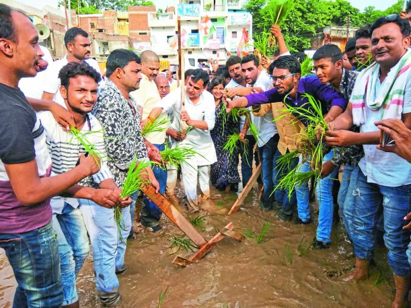 सीधी। नेता प्रतिपक्ष अजय सिंह राहुल के गृह और विस निर्वाचन क्षेत्र चुरहट की खस्ताहाल सड़क को लेकर रविवार को युवा कांग्रेस ने विरोध प्रदर्शन किया गया। कार्यकर्ताओं ने बाजार की सड़कों में गड्ढों के भीतर धान की रोपाई की। आंदोलन में युवा कांग्रेस के कार्यकारी प्रदेशाध्यक्ष शशांक द्विवेदी के नेतृत्व में सैकड़ों कार्यकर्ता उपस्थित रहे।