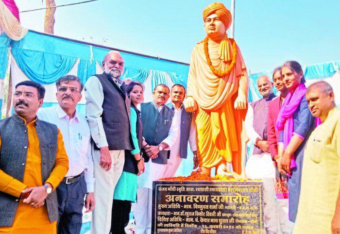 सीधी। संजय गांधी कॉलेज में शुक्रवार को स्वामी विवेकानंद की आदमकद प्रतिमा का अनावरण किया गया। मुख्य अतिथि भाजपा प्रदेश महामंत्री विष्णुदत्त शर्मा उपस्थित रहे। अध्यक्षता विद्यार्थी परिषद के प्रांत प्रमुख रघुराज तिवारी ने की। विधायक केदारनाथ शुक्ल, पूर्व सांसद गोविंद मिश्रा, प्रदेश मंत्री शरदेंदु तिवारी, लालचंद गुप्ता, जनभागीदारी समिति अध्यक्ष गुरूदत्तशरण शुक्ल सहित अन्य लोग भी मंचासीन रहे। मुख्य अतिथि शर्मा ने कहा कि स्वामी विवेकानंद युवाओं के प्रेरणास्रोत हैं।