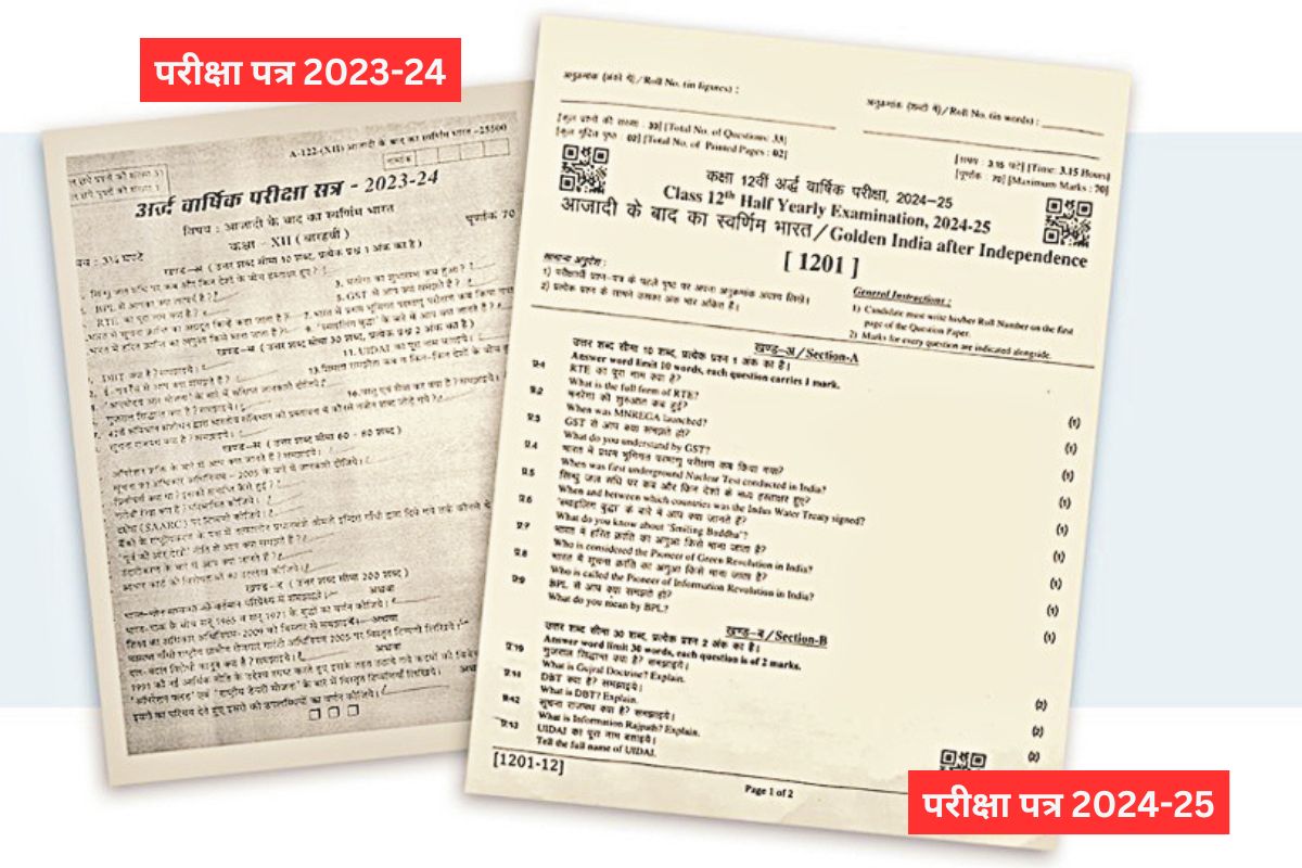 12वीं की शनिवार को हुई आजादी के बाद का स्वर्णिम भारत की परीक्षा में 33 सवाल पूछे गए थे। जबकि उदयपुर व हनुमानगढ़ में पिछले साल हुई परीक्षा में कुल 31 प्रश्न पूछे गए थे। जिनमें अथवा के विकल्प सहित चार अतिरिक्त प्रश्न सहित कुल 35 प्रश्न थे। इस साल 32 प्रश्न हूबहू परीक्षा में पूछे गए हैं।