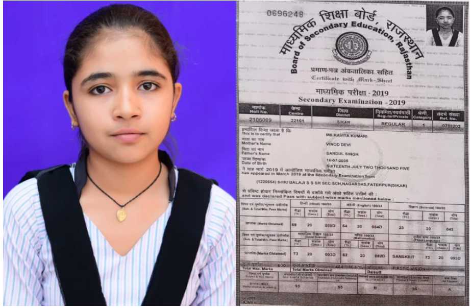 जानकारी के अनुसार नगरदास की बालाजी सीनियर सैकण्डरी स्कूल में पढऩे वाली छात्रा कविता कुमारी के दसवीं में परिणाम के समय 80.67 प्रतिशत अंक आए थे। जिसमे विज्ञान विषय में सिर्फ 43 अंक थे। जबकि छात्रा के बाकि विषय में 80 से ज्यादा अंक थे। कविता पढ़ाई में मेधावी थी, इसलिए विज्ञान संकाय लेना चाहती थी, लेकिन दसवीं कक्षा के विज्ञान विषय में 43 अंक होने के कारण सभी लोगों के दवाब के चलते उसे आर्ट्स विषय लेना पड़ा। कविता ने आरटीआई के माध्यम से अपनी उत्तरपुस्तिका मंगवाई थी। बोर्ड ने गुरुवार को कॉपी के साथ परिवर्तित परिणाम भी भेजा तब बोर्ड की गलती की पोल खुली। उत्तरपुस्तिका में कविता के विज्ञान विषय में 94 नंबर आए हुए थे, लेकिन रिजल्ट में सिर्फ 43 अंक ही अंकित थे। जबकि 51 अंकों की बढ़ोतरी होने पर कुल प्राप्तांक परसेंटेज 89.16 होती।