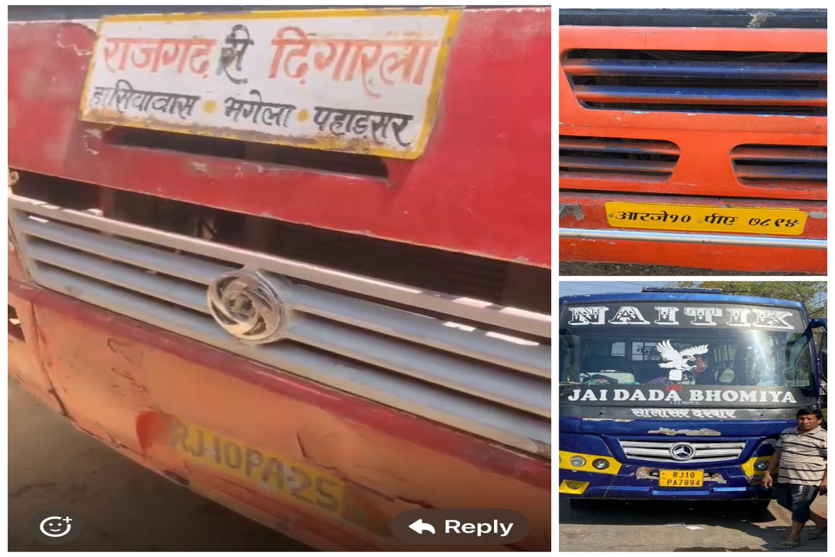 वहीं चूरू के राजगढ़ क्षेत्र में 26 मार्च 2025 को ही एक ही नंबर प्लेट से दो बसें रूट पर चला रहा है। उप परिवहन निरीक्षक ने बस का पांच लाख रुपए का चालान बनाया है। बस मालिक नीलम देवी पत्नी संजीव कुमार ने बस आरजे 10 पीए 7894 नंबर प्लेट लगा रखी थी, जबकि उक्त बस के ऑरिजनल नंबर आरजे 18 पीए 2829 हैं। इस बस के मालिक ने उक्त बस के नंबरों को 2020 में सस्पेंड करवा रखा था। आरजे 10 पीए 7894 नंबर प्लेट लगी बस राजगढ़ बस स्टेंड पर खड़ी मिली। जिस बस का चालन बस के नंबर भी अलग-अलग भाषा में लिख रखे थे। निरीक्षक ने ड्राइवर को भी चेतावनी देते हुए आगामी समय में ऐसी बस चलाते पाए जाने पर 420 में एफआईआर दर्ज करवाने की चेतावनी दी है।