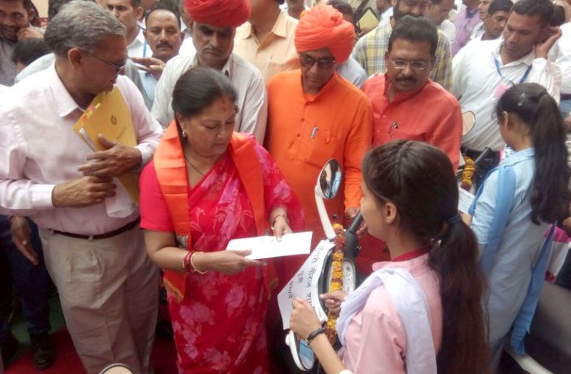 सीकर. मुख्यमंत्री वसुंधरा राजे के चार दिवसीय सीकर दौरे के तहत सोमवार को सीएम श्रीमाधोपुर पहुंची। इस दौरान मुख्यमंत्री का सांसद सुमेधानंद सरस्वती विधायक झाबर सिंह खर्रा और जिला अध्यक्ष मनोज सिंघानिया ने स्वागत किया। सीएम यहां सरस्वती गार्डन में भाजपा कार्यकर्ताओं से जनसंवाद करेगी। इसस पहले मुख्यमंत्री ने छात्राओं को स्कूल वितरित की और बेटी बचाओं बेटी पढ़ाओं अभियान और आंगनबाड़ी प्रवेसोत्सव के अंतर्गत बालिकाओं को स्कूल किट वितरण किए। सीएम ने दो बेटियों के जन्म के बाद परिवार नियोजन अपनाने पर पांच महिलाओं को शॉल ओढ़ाकर और प्रतीक चिन्ह देकर सम्मानित किया। मुख्यमंत्री अमृत प्रबुद्धजनों और लाभार्थियों के साथ कर रही है जन संवाद।