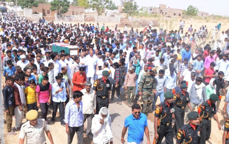 अंतिम यात्रा में युवाओं ने भारत माता की जय, शहीद मदनलाल अमर रहे के नारे लगाएं। शहीद मदनलाल को सेना के जवानों की टुकड़ी ने गार्ड ऑफ ऑनर दिया। वहीं पत्नी, बहन व शहीद की मां रो-रोकर बेसुध हो गई। सेना के जवानों ने शहीद के पुत्र व भाई को तिरंगा झंडा भेंट किया।