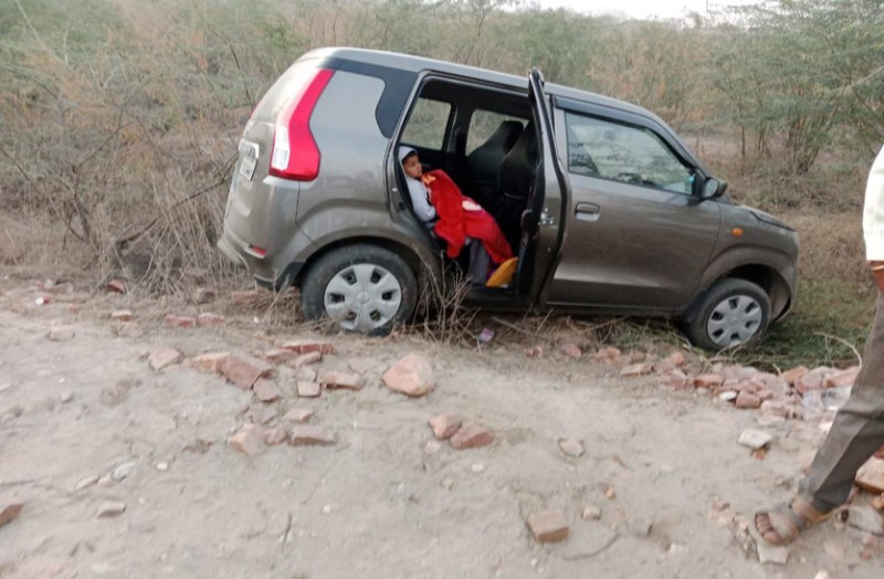 सीकर/पाटन. क्षेत्र के ग्राम पंचायत स्यालोदड़ा मोड़ पर हरियाणा बॉर्डर के समीप गुरुवार को दिल्ली से खाटूश्यामजी जा रहे एक श्रद्धालुओं की कार ड्राइवर को नींद की झपकी आने से सड़क से नीचे उतर गई। जानकारी के अनुसार रमेश कुमार पुत्र सोनाराम निवासी नई दिल्ली अपनी कार से परिवार सहित साथ खाटूश्याम जी के मेले में जा रहे थे। तभी अचानक नींद की झपकी आने से गाड़ी सड़क से नीचे उतर कर एक पेड़ से टकरा गई। जिसमें एक डेढ़ वर्षीय बालक अमृत पुत्र अंकित गंभीर रूप से घायल हो गया। जिस कारण कार में सवार लोग घायल हो गए। हादसे में एक डेढ़ साल का बालक गंभीर रूप से घायल हो गया। आसपास के ग्रामीणों की मदद से घायलों अस्पताल पहुंचाया गया। हादसे के बाद आसपास के लोगों ने घायलों को कार से बाहर निकाला व राजकीय रेफरल चिकित्सालय पाटन ले जाया गया जहां से उन्हें जिला अस्पताल नीमकाथाना के लिए रेफ र कर दिया गया। जहां उनका उपचार जारी है। कार चालक रमेश कुमार ने बताया कि मन्नत पूरी होने के बाद हाल ही में खरीदी गई नई कार से बाबा खाटू श्याम के धोक लगाने जा रहे थे। तभी अचानक यह हादसा हो गया। हादसे में क्षतिग्रस्त कार को जेसीबी मशीन की सहायता से बाहर निकाला गया।