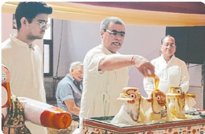 श्रीमाधोपुर. कस्बे के नगर आराध्य देव गोपीनाथ मंदिर में शुक्रवार को धर्म की रसगंगा बही। यहां शाम को भगवान जगन्नाथ, बलभद्र, सुभद्रा महारानी का पंचामृत व पुष्प अभिषेक कराया गया। भगवान जगन्नाथ को पंचामृत व फलों के रस से स्नान कराया गया। पंचामृत अभिषेक के साथ ही जगन्नाथ रथ यात्रा महोत्सव का आगाज हुआ। मंदिर महंत डॉ मनोहर शरण पारीक ने बताया कि महोत्सव के दौरान शनिवार को कई कार्यक्रम होंगे। दोपहर दो बजे मंदिर प्रांगण में वृंदावन धाम के संत राधारमण दास महाराज भक्त मीरा चरित्र की कथा सुनाएंगे। इस मौके पर महावीर प्रसाद पारीक, शिम्भू चौधरी, प्रिया शरण पटवारी, निरंजन सोनी, जितेंद्र पटवारी, अनिल कूलवाल, राजेश पंसारी, मुकेश कयाल, बजरंग लाल अमरसरिया, कालूराम सैनी, महावीर जोशी, मोहनलाल स्वामी, अशोक नायनका जोशी सहित काफी संख्या में लोग मौजूद थे