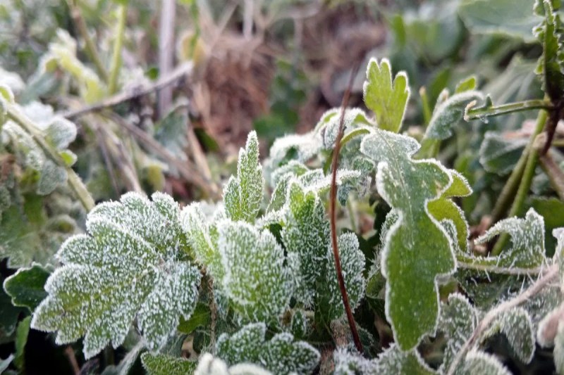 खेत में पत्तों पर जमी बर्फ। फोटो- पत्रिका