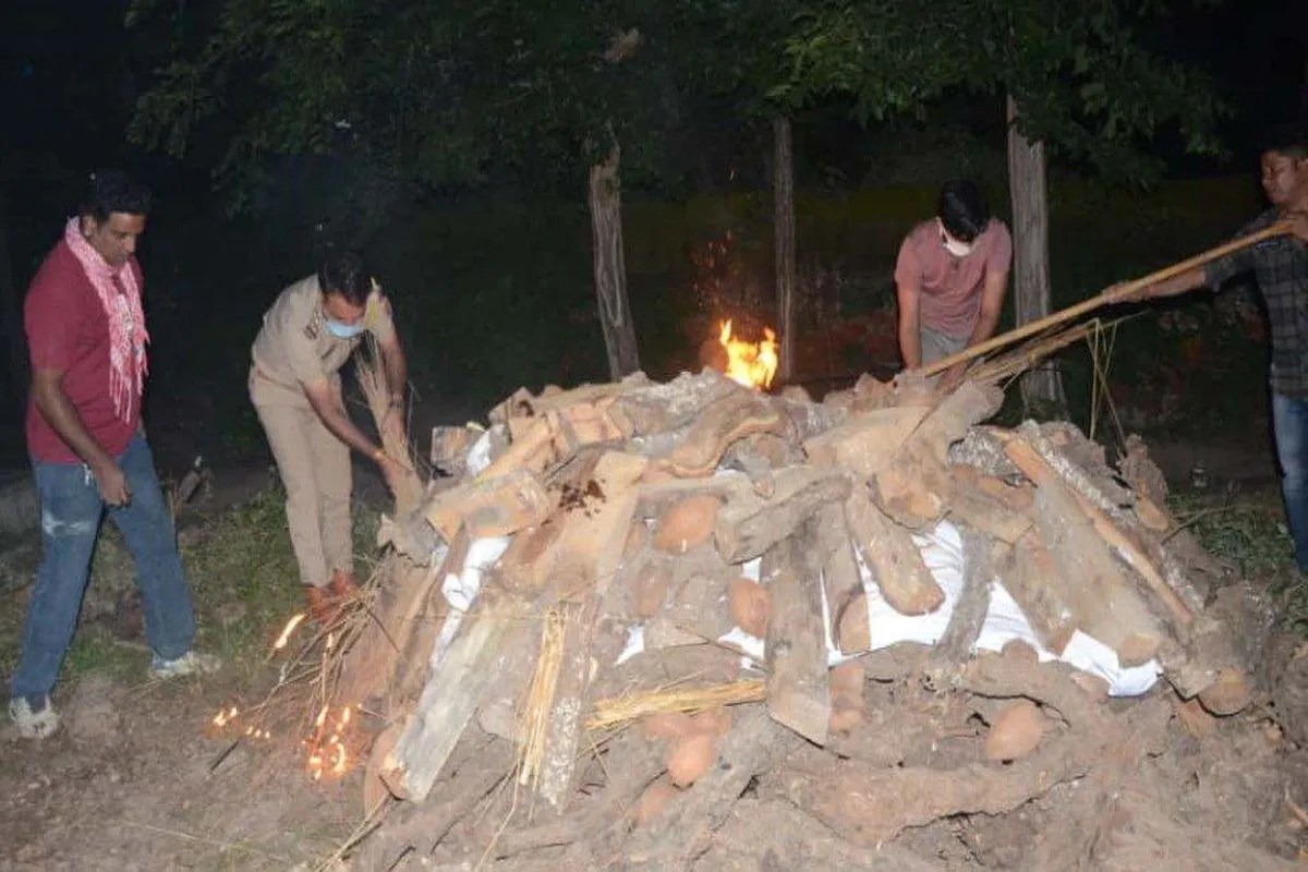 शव शैलेष को सौंपे जाने के बाद पुलिस अधिकारी इंद्रराज मरोड़िया व नगर परिषद के कार्मिक तथा शैलेष व उसके परिजन अस्पताल से वाहन में सीधे ही धर्माणा शव ले गए, जहां नगर परिषद, शिवधाम धर्माणा एवं जनकल्याण चेरिटेबल ट्रस्ट के सहयोग से शवों का अंतिम संस्कार किया गया। पांचों शवों के लिए एक ही चिता तैयार की गई। लिव इन पार्टनर शैलेष ने शवों को मुखाग्नि दी।