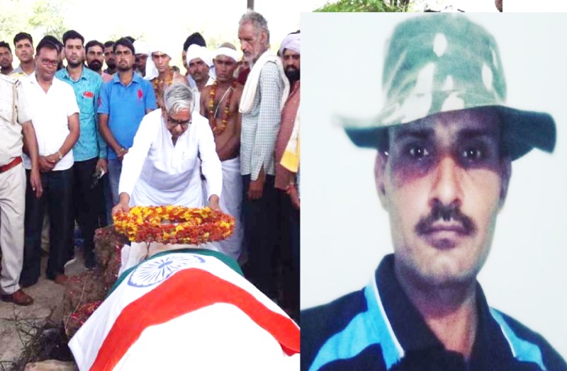 विधायक सुरेश मोदी, उपखंड अधिकारी अंजू शर्मा,तहसीलदार बृजेश गुप्ता, थानाधिकारी विजय तिवाड़ी, भगवान सहाय लाठर, सांवलराम यादव सहित अनेक गणमान्य लोगों ने पुष्पचक्र अर्पित कर श्रद्धांजलि दी। इसके बाद एसएसबी टीम से आए जवानों ने मृतक जवान अशोक को अंतिम सलामी दी। चार वर्षीय बेटे नक्षू ने पिता को मुखाग्नि दी। पत्नी मेगना का रो-रोकर बुरा हाल हो रहा था।