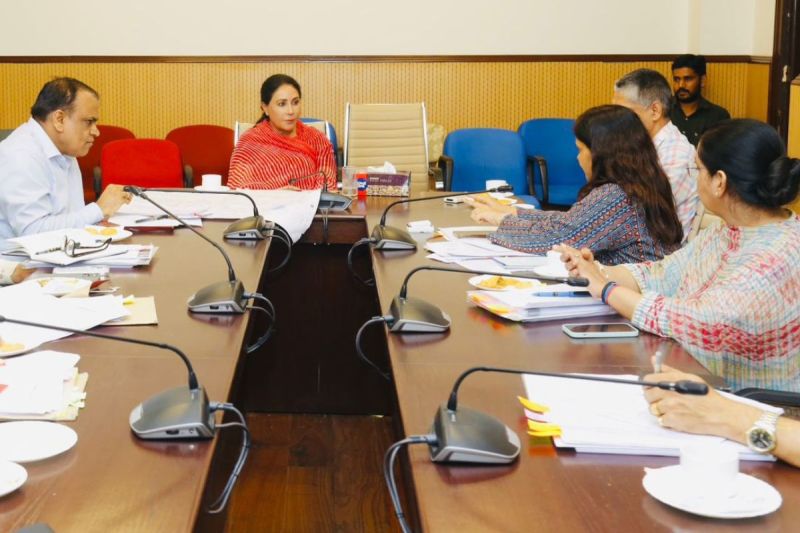 श्याम मंदिर कॉरिडोर को लेकर बैठक लेतीं उप मुख्यमंत्री दिया कुमारी।