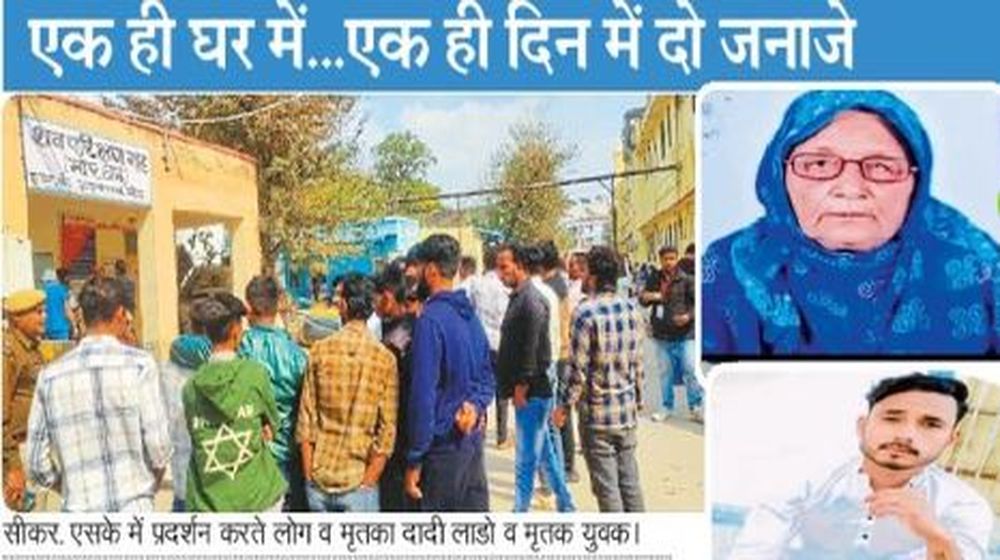 राजस्थान के सीकर शहर में चाचा के साथ बकरे खरीदने गांवो में गया युवक चाचा को बिना बताए ही सीकर आ गया। तलाशने पर भी नहीं मिला तो कोतवाली थाना पुलिस में शिकायत दी गई। इस पर पुलिस ने मोबाइल की लोकेशन ट्रेस की तो युवक का शव फतेहपुर रोड पर एक बाड़े में मिला। जिसका शव देख सदमे में दादी ने भी दम तोड़ दिया। बाद में गमगीन माहौल में दोनों का जनाना उठाया गया।