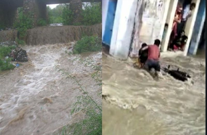 सीकर. राजस्थान के सीकर जिले में बुधवार को बादल फिर जमकर बरसे। सीकर शहर व आसपास के इलाकों में करीब 15 मिनट तो खंडेला, नीमकाथाना, गणेश्वर व नजदीकी क्षेत्रों में एक घंटे तक बादल झमाझम बरसे। जिससे सड़कें दरिया बन गई तो खेत तालाब में तब्दील हो गए। गणेश्वर की कातली नदी सहित कई नालों में भी पानी की चादर चल गई। खंडेला में एक बाइक सवार पानी के बहाव में बहता-बहता बचा। निचले इलाकों में पानी भराव से स्थानीयवासियों व राहगिरों की परेशानी बढ़ गई। वहीं, बरसात से मौसम सुहाना होने के साथ एकबारगी गर्मी से भी निजात मिली। इससे पहले अंचल में सुबह से आंशिक बादल छाए हुए थे। जिसके बीच बीच में सूरज की लुकाछिपी चल रही थी। इसी बीच दोपहर करीब दो बजे अचानक पानी से भरे बादल आए और झमाझम बरसने लगे।