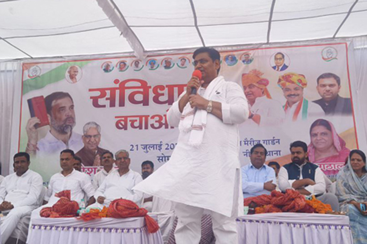 नीमकाथाना. शहर के मैरिज गार्डन में सोमवार को आयोजित संविधान बचाओ सभा में प्रदेश कांग्रेस अध्यक्ष गोविंद सिंह डोटासरा सरकार पर जमकर बरसे। उन्होंने कहा कि राज्य की सरकार नीमकाथाना क्षेत्र का लगातार अपमान कर रही है और यहां की जनता की भावनाओं की अनदेखी की जा रही है। यदि 2028 में कांग्रेस की सरकार बनी तो पहली ही कैबिनेट बैठक में नीमकाथाना को जिला घोषित किया जाएगा। कांग्रेस ने सत्ता में रहते हुए प्रदेश को 19 नए जिले और 3 नए संभाग दिए, लेकिन भाजपा ने राजनीतिक द्वेष के चलते सीकर संभाग और नीमकाथाना जिले को समाप्त कर दिया।