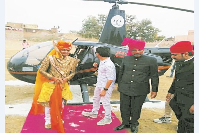 बिसाऊ. झुंझुनूं के गांव महनसर के गढ़ में मंगलवार को होने वाली शादी के लिए दुल्हन को लेने के लिए इंजीनियर दुल्हा सोमवार को हैलीकॉप्टर से पहुंचा। महनसर के लालसिंह शेखावत ने बताया कि महिपाल सिंह की पुत्री दिव्या कंवर की शादी 6 फरवरी को है।