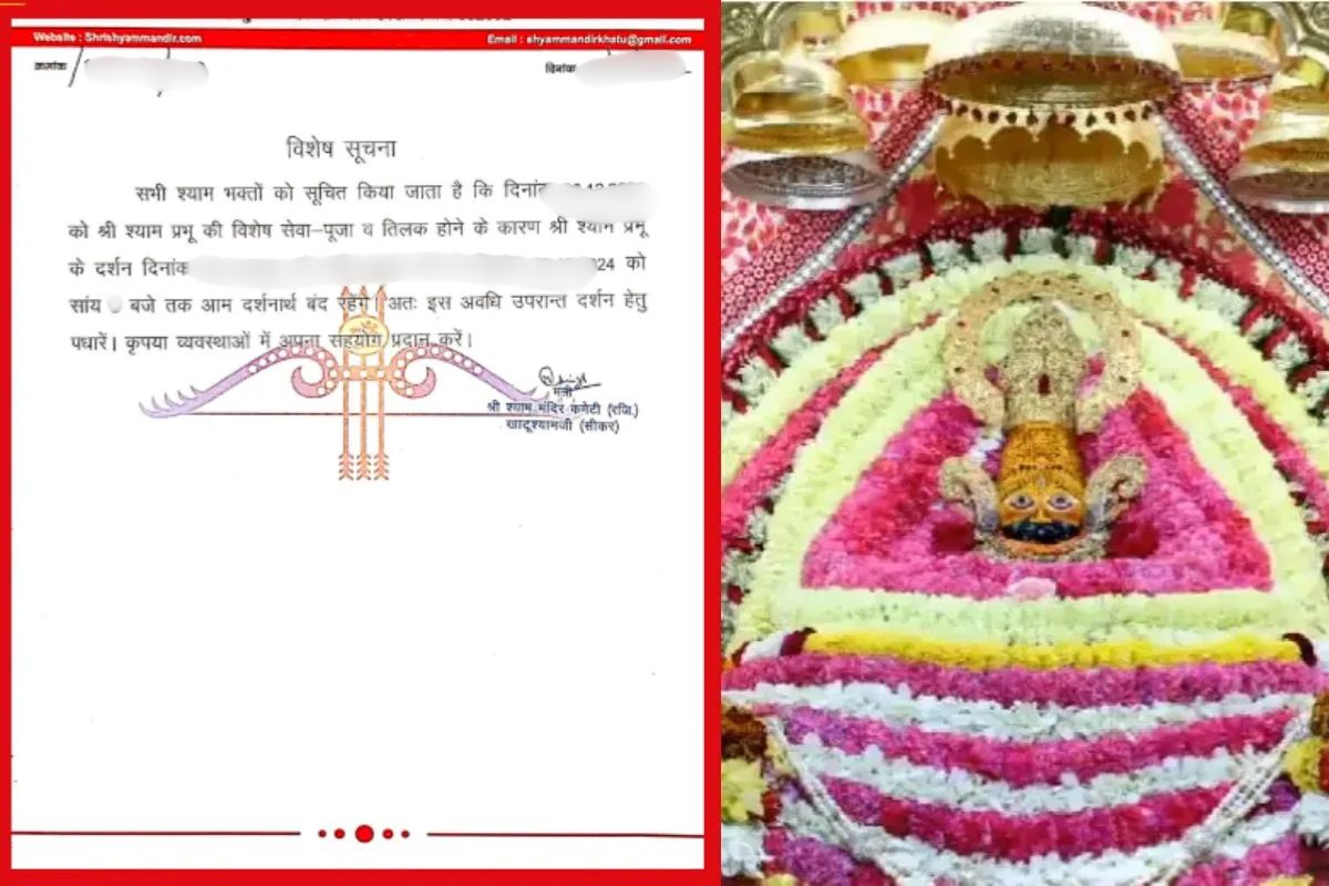 Khatu Shyam Temple Will Closed For 43 Hours: होली के पर्व पर खाटू नरेश की विशेष सेवा पूजा के चलते धूलंडी की शाम तक श्याम बाबा के पट बंद होंगे। 14 मार्च को होली पर्व पर श्याम प्रभू की विशेष सेवा-पूजा व दिनांक 15 मार्च को तिलक होने के कारण श्याम बाबा के दर्शन दिनांक 13 मार्च की रात 10 बजे से बंद कर दिए जांएगे। 15 मार्च को शाम पांच बजे पट खुलेंगे। ऐसे में भक्तों के 43 घंटे बाबा के दर्शन नहीं हो सकेंगे।
