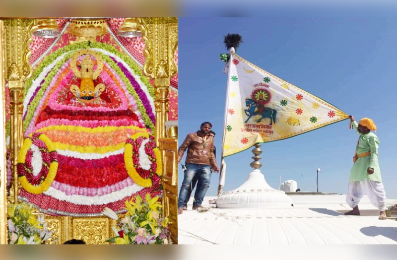 श्री श्याम दरबार सूरजगढ़ का 371 वां निशान श्याम बाबा के लक्खी मेले पर आज अपनी हाजिरी लगाने खाटूधाम पहुंचा है। श्याम मंदिर के शिखर पर फहराने वाली सूरजगढ़ की ध्वजा भी चढ़ा दी गई। 371 साल की इस परंपरा को सूरजगढ़ से पैदल जोत लेकर आए श्रद्धालुओं ने हमेशा की तरह यह परंपरा ठीक सवा ग्यारह बजे निभाई। इस दौरान श्याम मंदिर बाबा श्याम के जयकारों से गूंज उठा। ध्वज चढ़ाने वाले श्रद्धालुओं ने बाबा श्याम के दर्शन कर ध्वज परंपरा का आगे भी निभते होते रहने की मनौती मांगी और इसके बाद वापस पैदल ही रवाना हो गए। बतादें कि खाटूश्यामजी के मेले में हर साल यूं तो लाखों निशान चढ़ते हैं। लेकिन, इन सारे निशानों में से सिर्फ सूरजगढ़ का निशान ही हर साल खाटूश्यामजी के मंदिर के शिखर पर सालभर लहराता है। झुंझुनू जिले के सूरजगढ़ शहर के इस निशान को लेकर करीब दस हजार श्रद्धालु हर साल चार दिन की पदयात्रा कर मेले में पहुंचते हैं। पदयात्राा में काफी संख्या में महिलाएं भी शामिल होती है। जो सिर पर सिगड़ी में जोत लिए गीत गाती हुई चलती है। मान्यता है कि जो महिला अपने सिर पर सिगड़ी रखकर यात्रा करती है, उसकी हर मनौती बाबा श्याम पूरी करते हैं। सूरजगढ़ की इस निशान यात्रा के पीछे एक दंतकथा भी है। जिसके मुताबिक सीकर जिले के खण्डेला कस्बे के एक भक्त की बाबा श्याम में गहरी आस्था था। वह हर साल मेले में खण्डेला से खाटूधाम निशान लेकर जाया करता था। उस श्याम भक्त ने एक बार अन्य श्याम भक्तों को बताया कि बाबा श्याम उसके सपने में आए और खण्डेला की बजाय सूरजगढ़ से निशान चढ़ाने की बात कही है। इसके बाद से ही सूरजगढ़ से निशान लाने की यह परंपरा 370 साल पहले शुरू हुई।