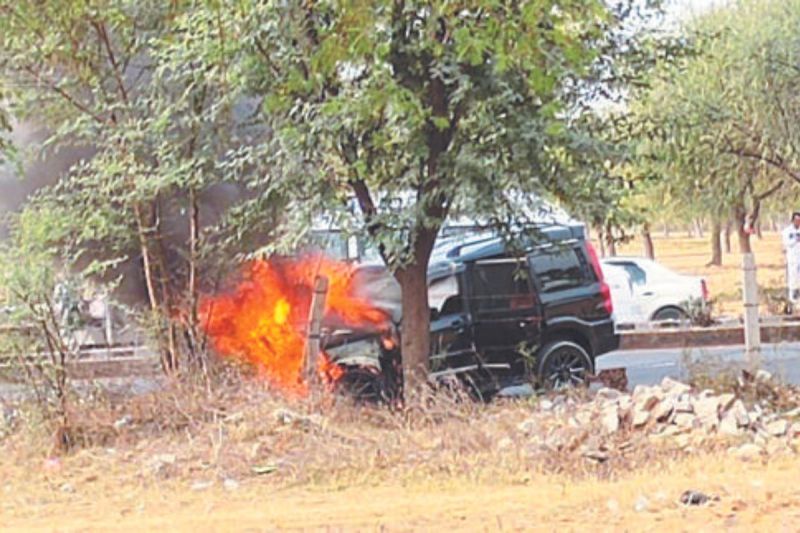 गाड़ी चालक कोटपूतली निवासी संदीप सिंह राठौड़ ने बताया कि वह अपने दो दोस्तों, मामा और मौसी के लड़कों के साथ खाटूश्यामजी में बाबा श्याम के दर्शन करके वापस लौट रहे थे। लाखनी टोल प्लाजा के नजदीक जीप के बोनट से धुआं उठने लगा। ऐसे में उन्होंने जीप से उतरकर बोनट खोलने की कोशिश की, लेकिन बोनट नहीं खुला। ड्राइवर और गाड़ी में सवार अन्य चारों लोग नीचे उतर गए। इसके बाद फायर ब्रिगेड को सूचना दी गई। संदीप के अनुसार गाड़ी हरियाणा नंबर की रजिस्टर्ड है, जो पिछले साल नवंबर में ही खरीदी थी। आग लगने की सूचना के बाद नगर पालिका रींगस से फायर ब्रिगेड मौके पर पहुंची। करीब 20 मिनट में पूरी तरह से आग पर काबू पाया। प्रारंभिक जांच में पुलिस ने पाया कि शॉर्ट सर्किट से आग लगी है। पीड़ित ने थाना में भी शिकायत दी है और कार कंपनी वालों को भी बताया है।