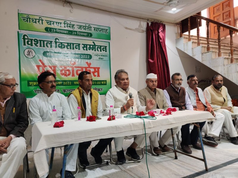 पूर्व प्रधानमंत्री चौधरी चरण सिंह की 120 वीं जयंती पर कटराथल गांव में होने वाली जनसभा की तैयारियों को लेकर शुक्रवार को राष्ट्रीय लोकदल के राष्ट्रीय महासचिव त्रिलोक त्यागी सीकर आए। जनसभा को लेकर शुक्रवार को राष्ट्रीय लोकदल के पदाधिकारियों ने तैयारी बैठक ली। इसमें वक्ताओं ने केंद्र सरकार पर जमकर तंज कसे। पार्टी के राष्ट्रीय महासचिव त्रिलोक त्यागी ने कहा कि 25 दिसंबर को पूर्व प्रधानमंत्री चौधरी चरण सिंह की 120वीं जयंती के मौके पर सीकर के कटराथल में यूनिवर्सिटी के सामने सरकारी स्कूल के मैदान में जनसभा होगी। जनसभा में देश के गांवों, किसानों और मजदूरों का विकास के सभी मुद्दों पर चर्चा की जाएगी। इस दौरान जोन प्रभारी तथा प्रदेश महामंत्री काशीराम मेघवाल, प्रदेश उपाध्यक्ष बीरबल सिंह, प्रदेश महासचिव शहाबुद्दीन गौड़, प्रदेश सचिव सांवरमल मूंड, जिलाध्यक्ष चुन्नीलाल फौजी, किसान नेता हरलाल सिंह मील, महेन्द्र प्रताप सिंह, पालसिंह खीचड़, रामचन्द्र भालादार, दीपक मेघवाल सहित पदाधिकारी मौजूद रहे।