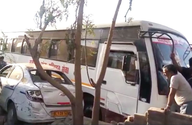 -बस की रफ्तार अधिक होने के कारण बस कार को करीब 50 फीट की दूरी तक घसीटते हुए दीवार तोड़ खाली प्लाट में जा घुसी।
