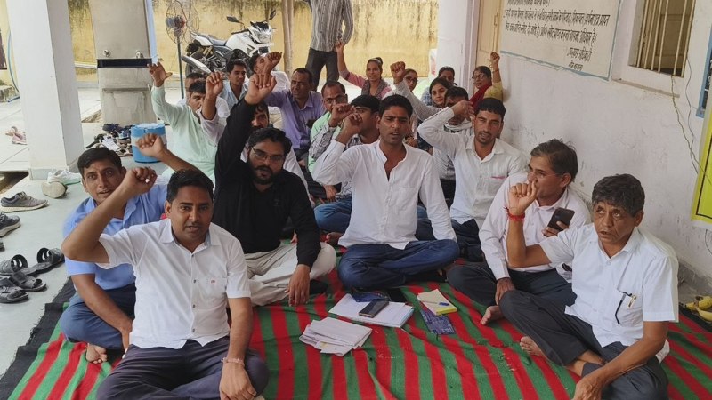 VIDEO: मांगों को लेकर धरने पर बैठे राजस्व विभाग के कार्मिक