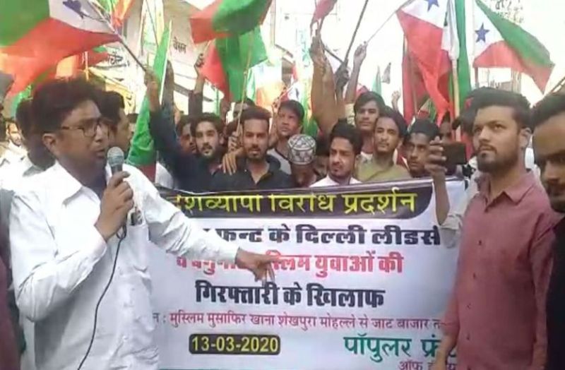 सीकर. दिल्ली के दंगों (Delhi Riots) में पीएफआई (PFI) यानी पॉपुलर फ्रंट ऑफ इंडिया के सदस्यों को गिरफ्तार किए जाने का विरोध राजस्थान में शुरू हो गया है। गिरफ्तारी के विरोध में आज यहां सीकर जिले में पॉपुलर फ्रंट ऑफ इंडिया के बैनर तले सैंकड़ों लोगों ने आज जाट बाजार में विरोध प्रदर्शन किया। जिसमें प्रदर्शनकारियों ने दिल्ली पुलिस व मोदी सरकार के खिलाफ जमकर नारेबाजी की। प्रदर्शनकारियों का कहना था कि दिल्ली के दंगों में पुलिस केंद्र सरकार की शह पर एकतरफा कार्रवाई कर रही है। पॉपुलर फ्रंट ऑफ इंडिया के बेगुनाह पदाधिकारियों व सदस्यों को जबरन गिरफ्तार किया जा रहा है। जो गलत व बर्दाश्त के बाहर है। उनकी मांग थी कि पुलिस जल्द ही उन्हें रिहा करे। चेतावनी भी दी कि मांग पूरी नहीं होने पर बड़ा आंदोलन किया जाएगा।