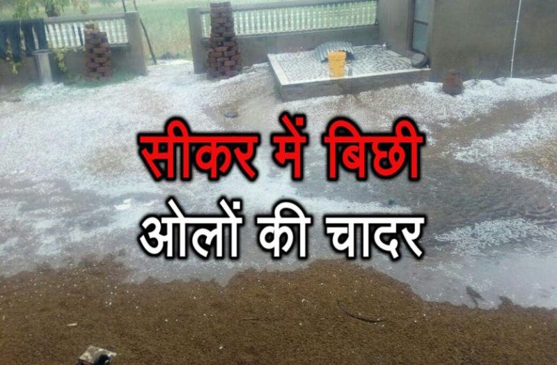 सीकर में धोद इलाके में ओले के समाचार मिले हैं। वहां खेतों व घरों में ओलों की चादर बिछ गई।