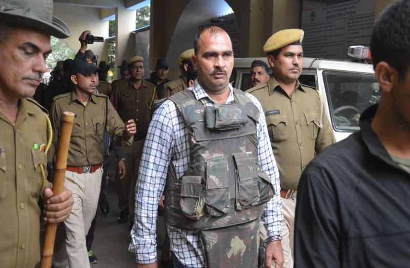 हमले के डर से बुलेटप्रूफ जैकेट में कुख्यात अपराधी की पेशी ,हथियारों से लेस पुलिस के जवानों ने की सुरक्षा