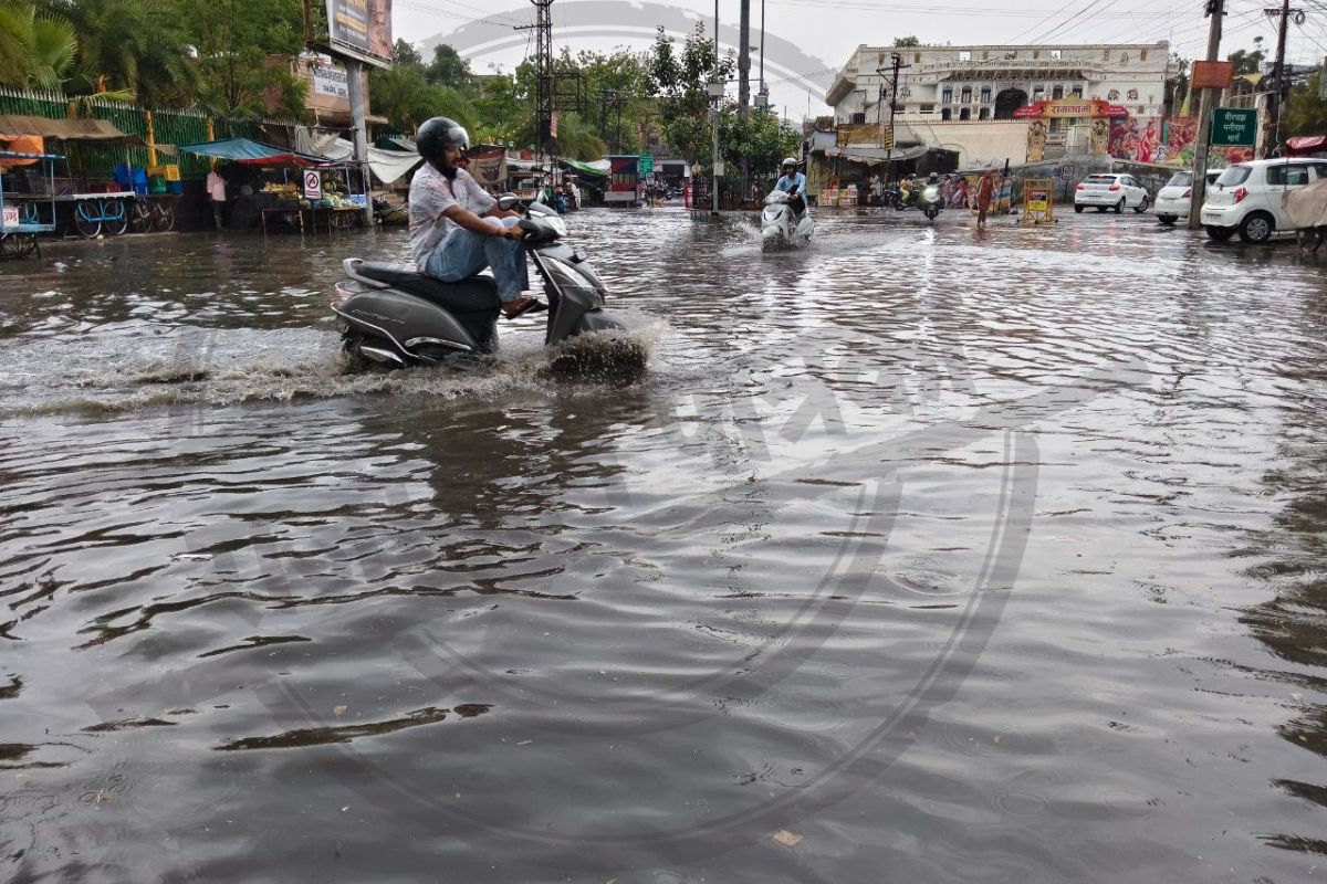 झुंझुनूं में हुई तेज बरसात के बाद भरा पानी