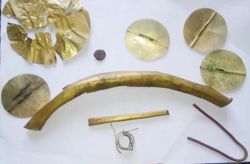 स्वर्ण आभूषणों में एक 10 सेमी. व्यास की एक बड़ी पत्ती, 20 सेमी. अद्र्धचंद्राकार गले का आभूषण, 9 सेमी की एक राड, चांदी का तार एवं 17 सेमी. लंबी तांबे की राड हैं। तांबे से निर्मित 6 सेमी. व्यास की 8 चूडिय़ा और 2 सेमी. व्यास की 9 बालिया है। डेक्कन कॉलेज पूणे के पूर्व उपकुलपति डॉ. बसंत सिंघे ने भी पूर्व में बिंज्यासी में मिले इन आभूषणों की हड़प्पाकालीन सभ्यता के होने की पुष्टि कर दी थी।